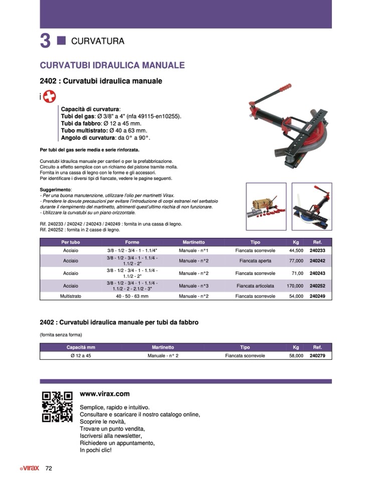 2402 : Curvatubi idraulica manuale per tubi da fabbro