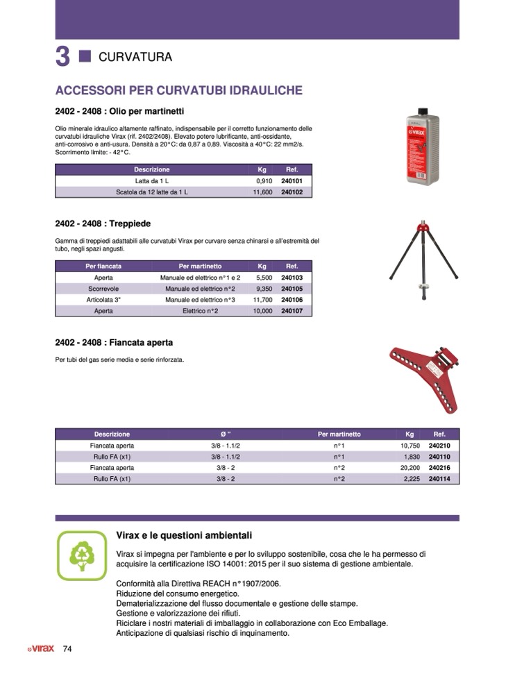 curvatubi idrauliche Virax (rif. 2402/2408). Elevato potere lubrificante, anti-ossidante,