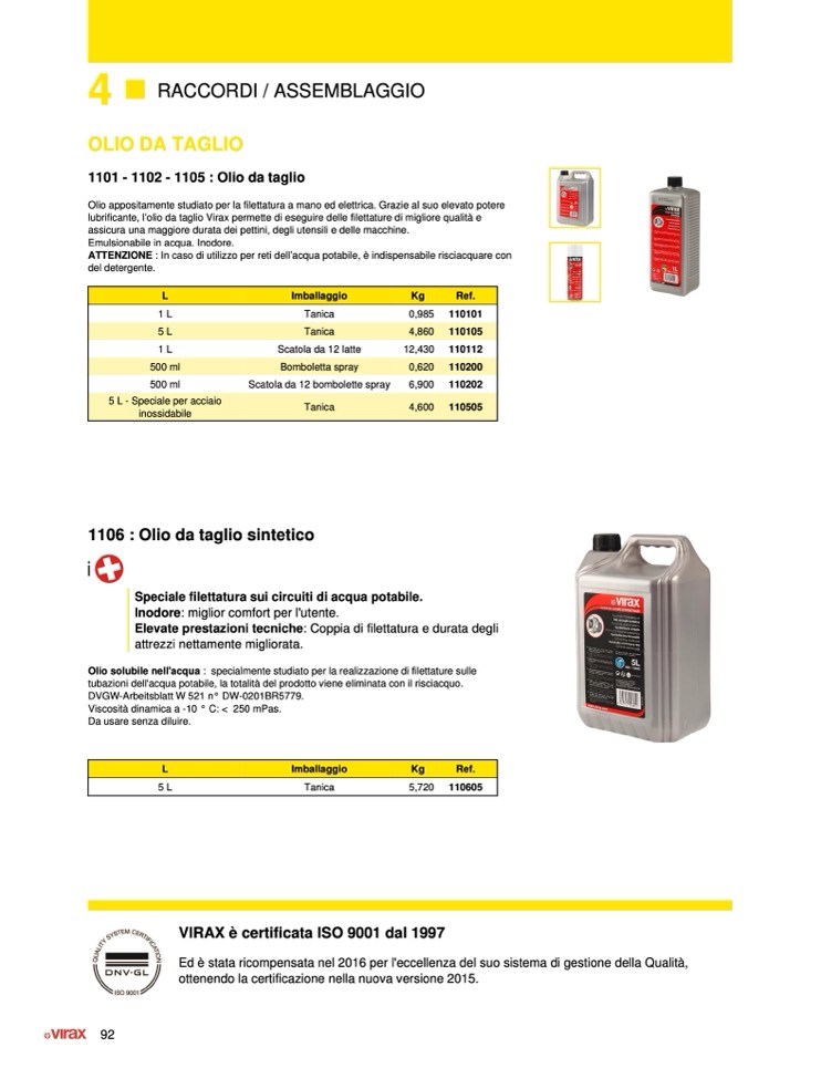 lubrificante, l’olio da taglio Virax permette di eseguire delle filettature di migliore qualità e