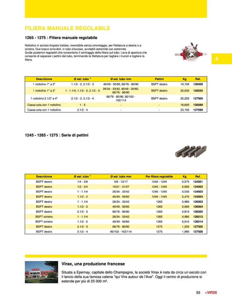 1265 - 1275 : Filiera manuale regolabile