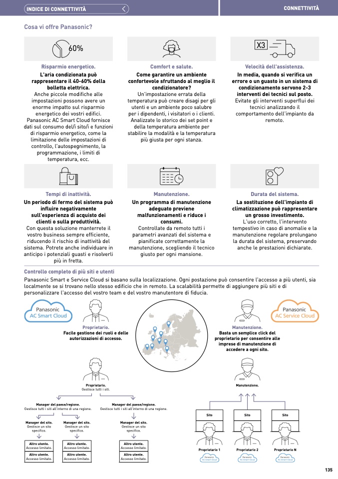 Panasonic Smart e Service Cloud si basano sulla localizzazione. Ogni postazione può consentire l'accesso a più utenti, sia