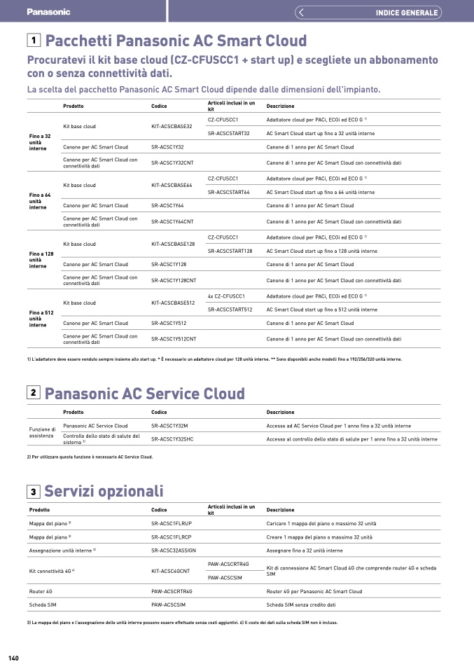 1) L'adattatore deve essere venduto sempre insieme allo start up. * È necessario un adattatore cloud per 128 unità interne. ** Sono disponibili anche modelli fino a 192/256/320 unità interne.