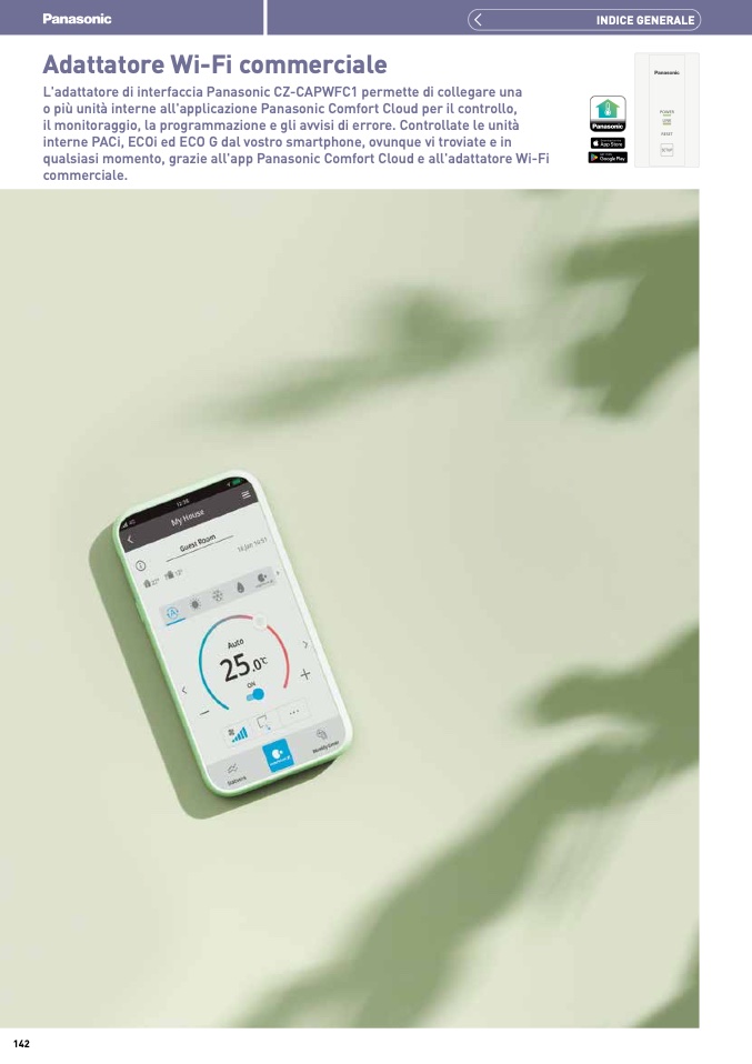 qualsiasi momento, grazie all'app Panasonic Comfort Cloud e all'adattatore Wi-Fi