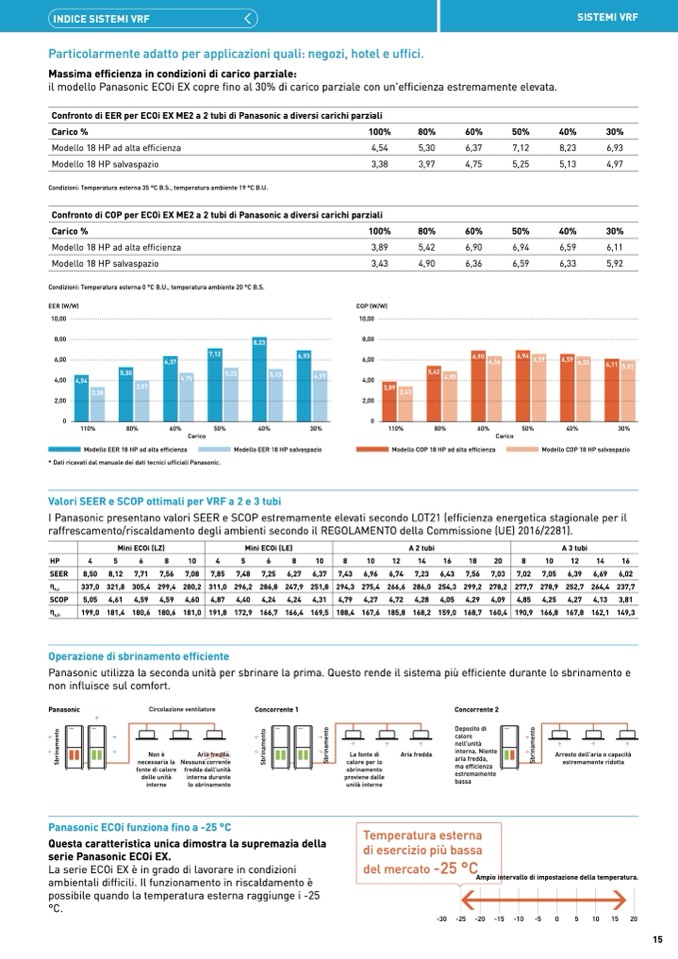 Confronto di EER per ECOi EX ME2 a 2 tubi di Panasonic a diversi carichi parziali