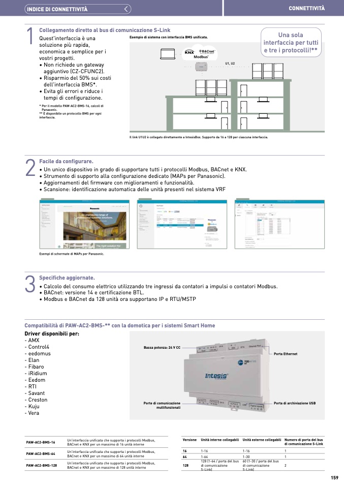 • Modbus e BACnet da 128 unità ora supportano IP e RTU/MSTP