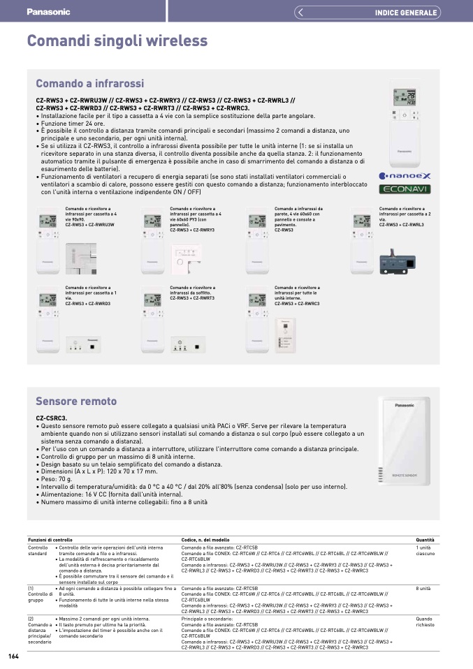 Comando a infrarossi: CZ-RWS3 + CZ-RWRU3W // CZ-RWS3 + CZ-RWRY3 // CZ-RWS3 // CZ-RWS3
