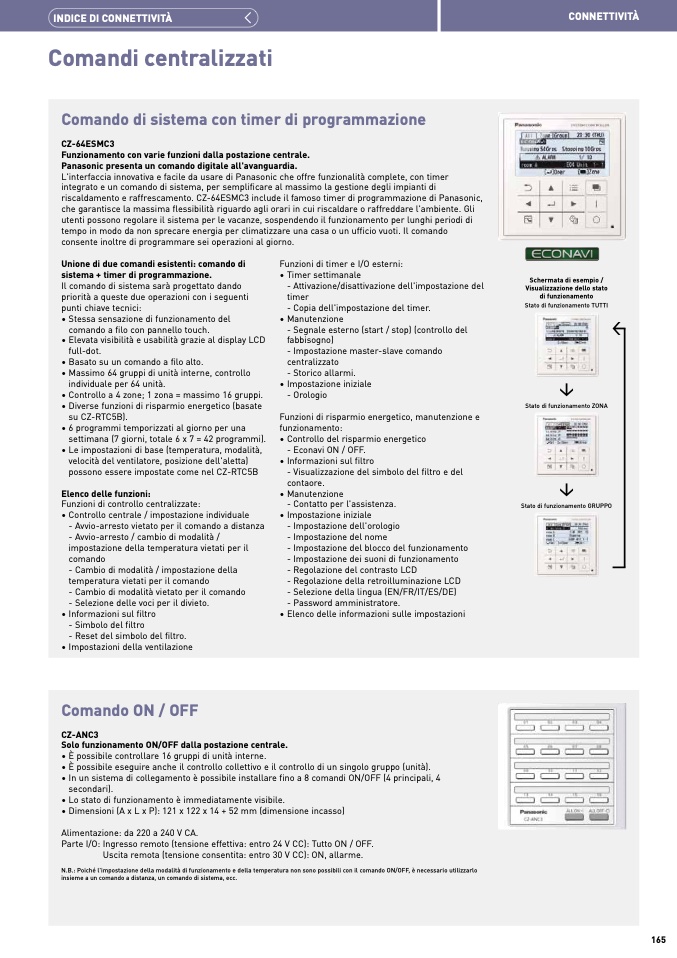 riscaldamento e raffrescamento. CZ-64ESMC3 include il famoso timer di programmazione di Panasonic,
