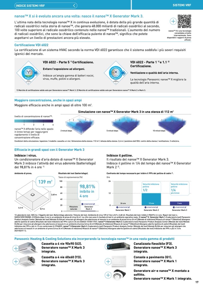 SHES210901902583. 2) Effetto dopo 3 ore in un ambiente di prova di circa 24 m3. Le cifre non sono il risultato di test in un ambiente operativo reale. 3) nanoeTM X Generator Mark 1: [Laboratorio test] Panasonic