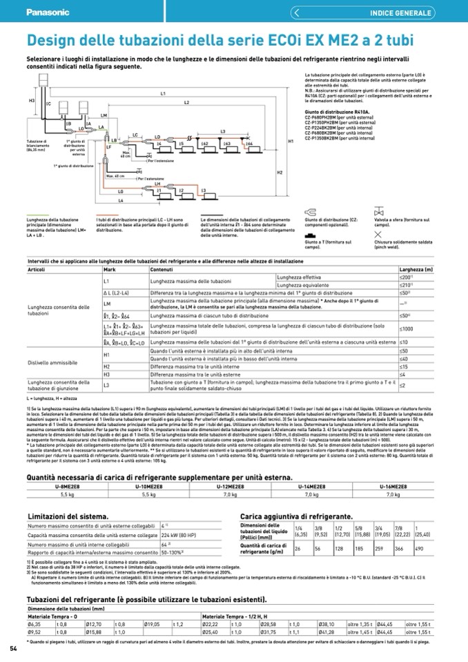 tubazioni supera i 40 m, aumentare di 1 livello una tubazione per liquidi o gas più lunga. Per ulteriori dettagli, consultare i Dati tecnici. 3) Se la lunghezza massima della tubazione principale (LM) supera i 50 m,
