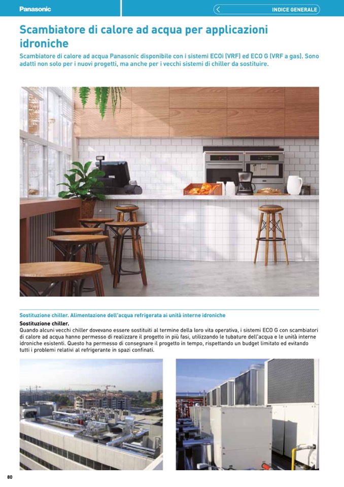 Scambiatore di calore ad acqua Panasonic disponibile con i sistemi ECOi (VRF) ed ECO G (VRF a gas). Sono