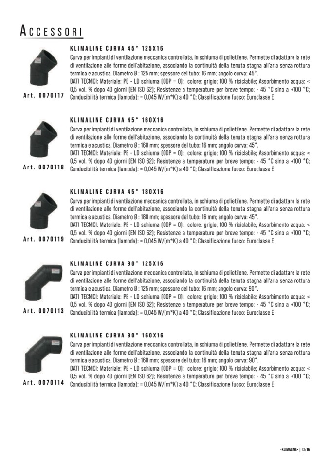 KLIMALINE CURVA 45° 160X16