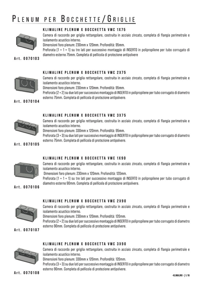 KLIMALINE PLENUM X BOCCHETTA VMC 1X75