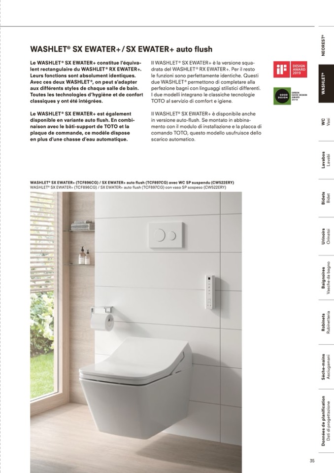 SX EWATER+ (TCF896CG) / SX EWATER+ auto flush (TCF897CG) avec WC SP suspendu (CW522ERY)