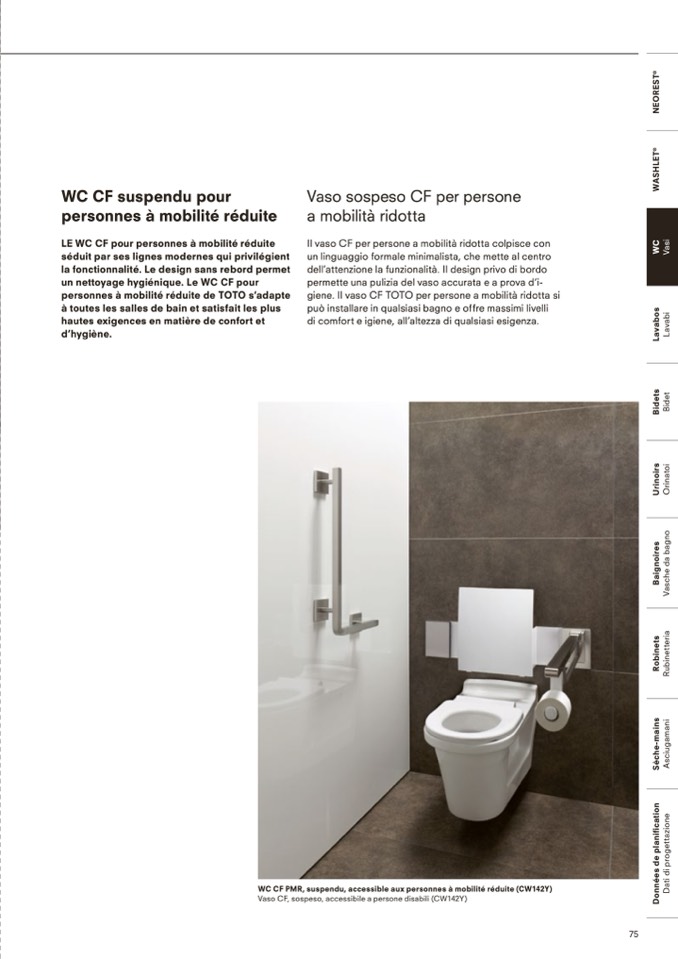 giene. Il vaso CF TOTO per persone a mobilità ridotta si