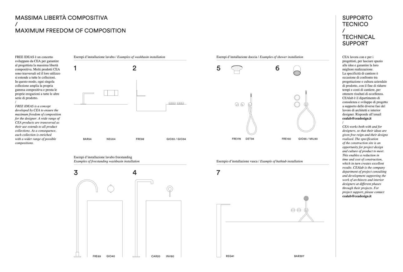 Esempi d’installazione lavabo / Examples of washbasin installation