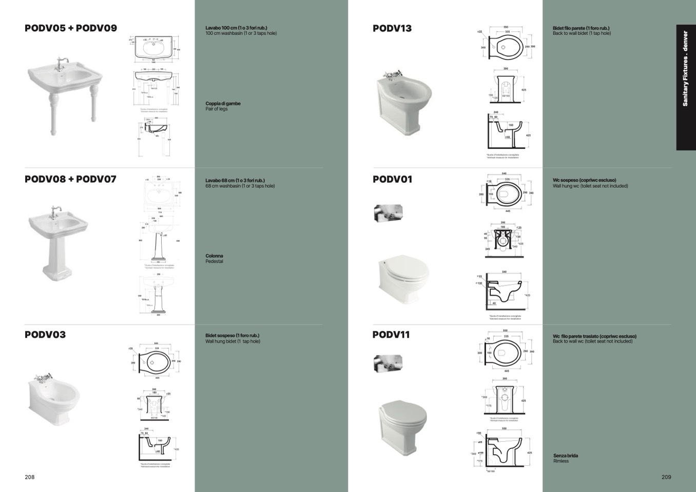 Lavabo 68 cm (1 o 3 fori rub.)
