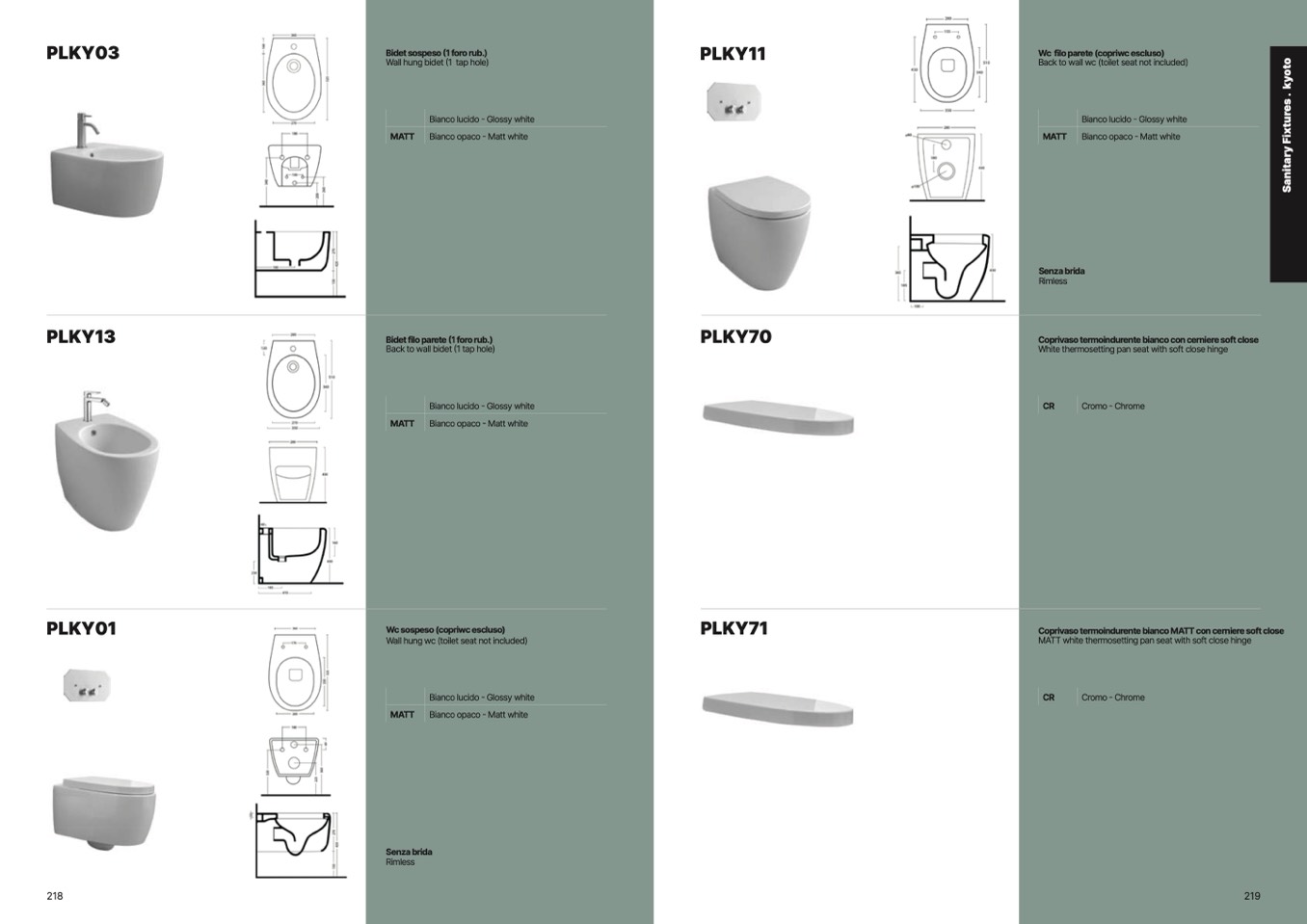 Coprivaso termoindurente bianco MATT con cerniere soft close