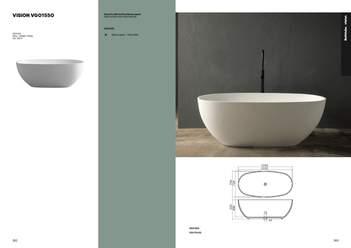 Vasca in solid surface bianco opaco