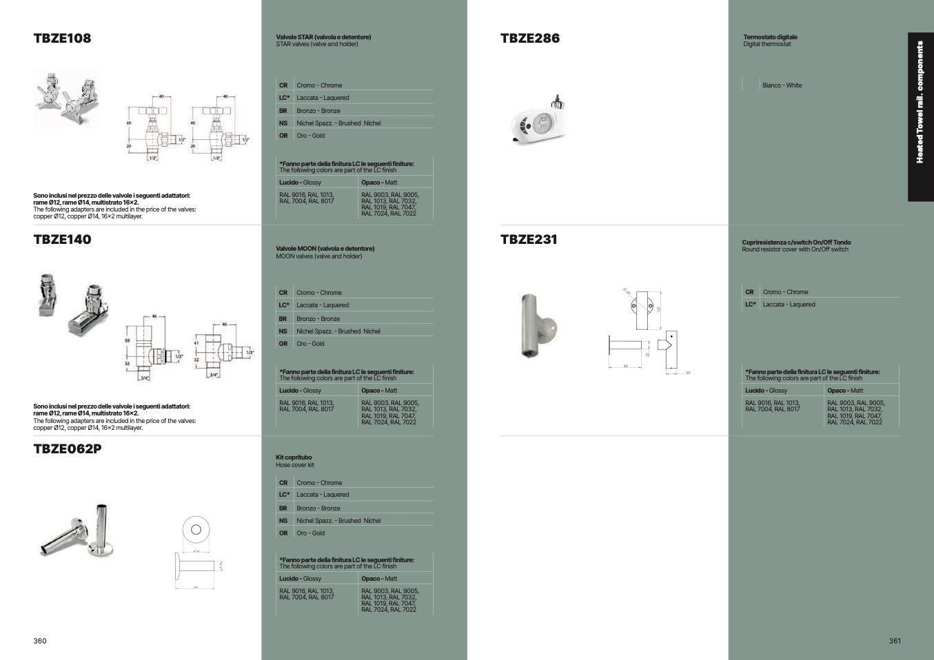 *Fanno parte della finitura LC le seguenti finiture: