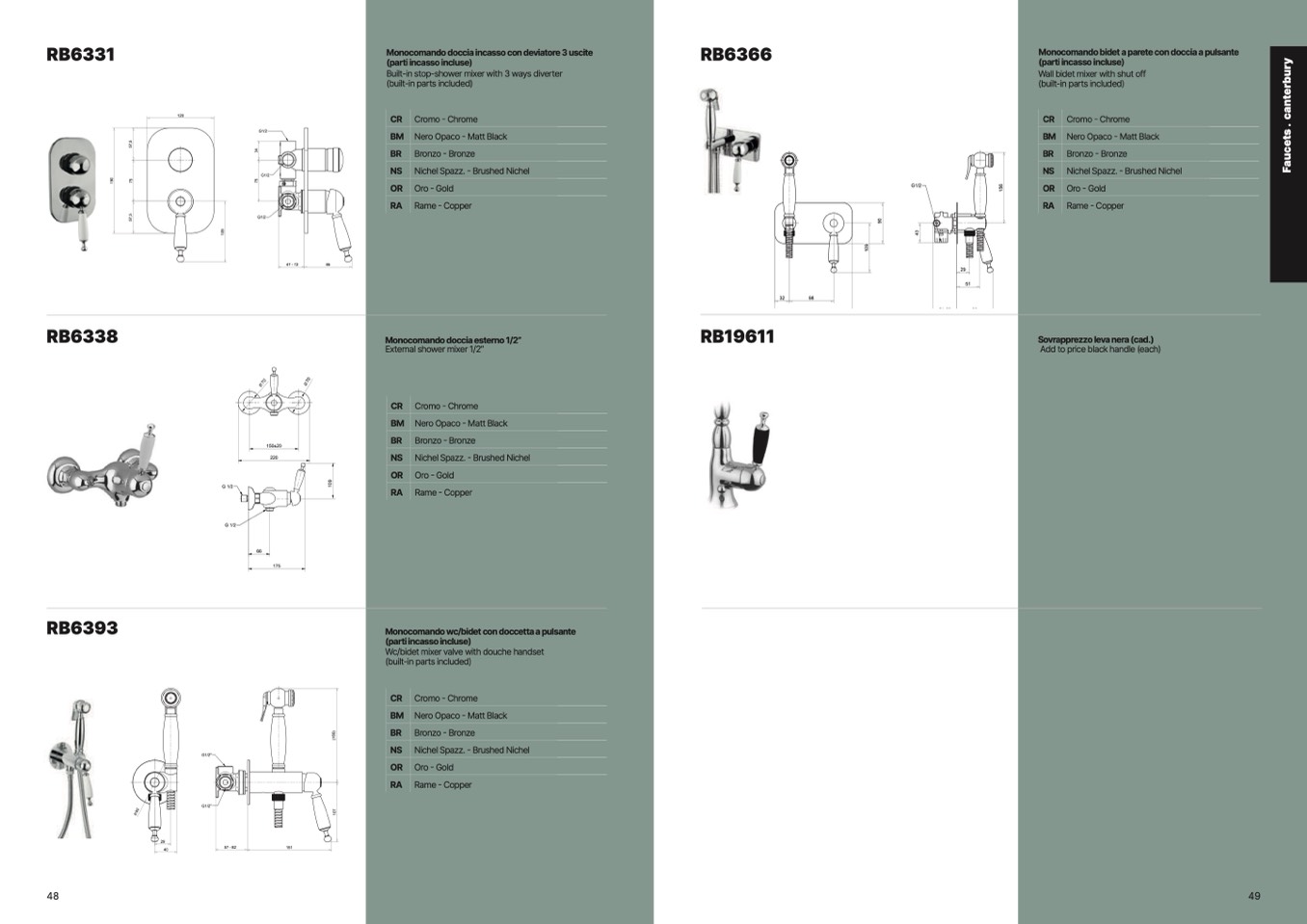 Monocomando wc/bidet con doccetta a pulsante