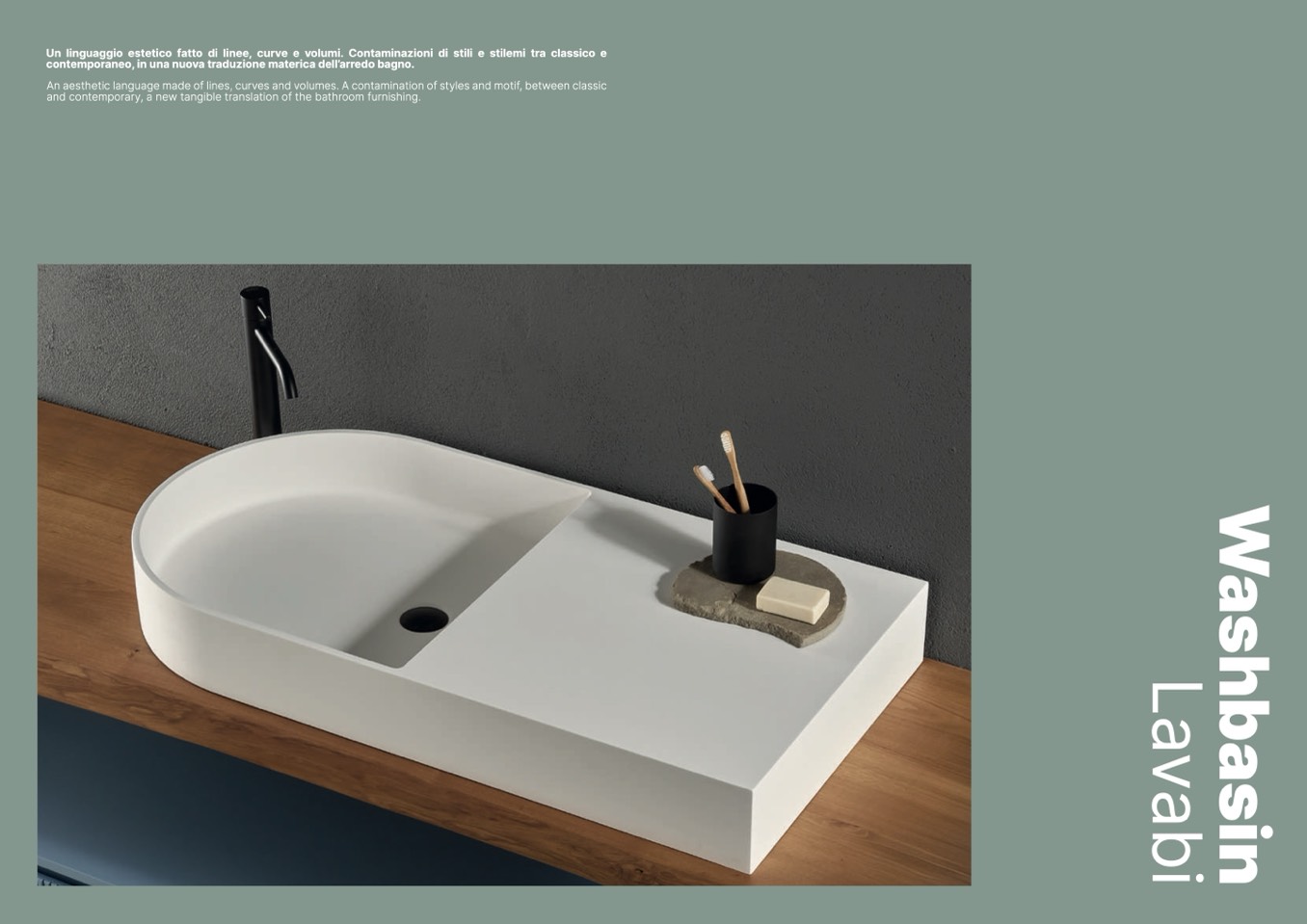 contemporaneo, in una nuova traduzione materica dell’arredo bagno.