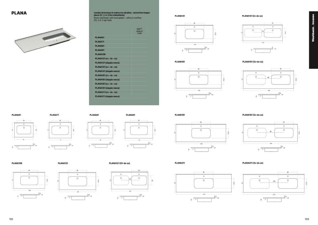 Lavabo da incasso in resina con alzatina - senza foro troppo
