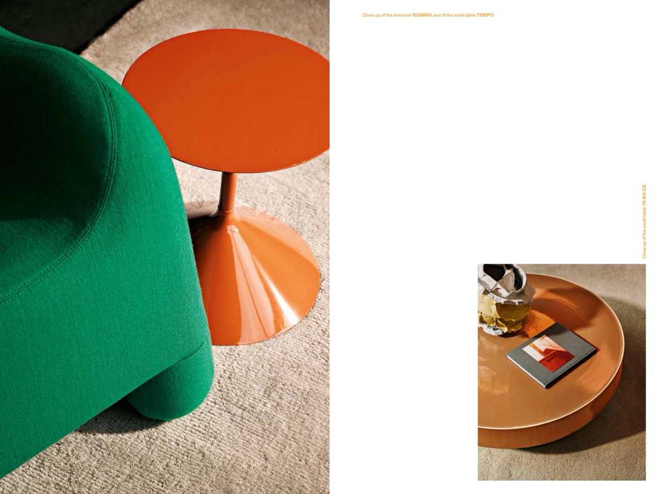 Close up of the armchair GOMMA and of the small table TEMPO