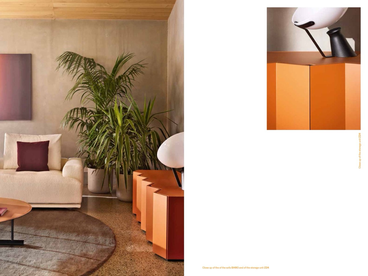 Close up of the of the sofa SHIKI and of the storage unit Z24