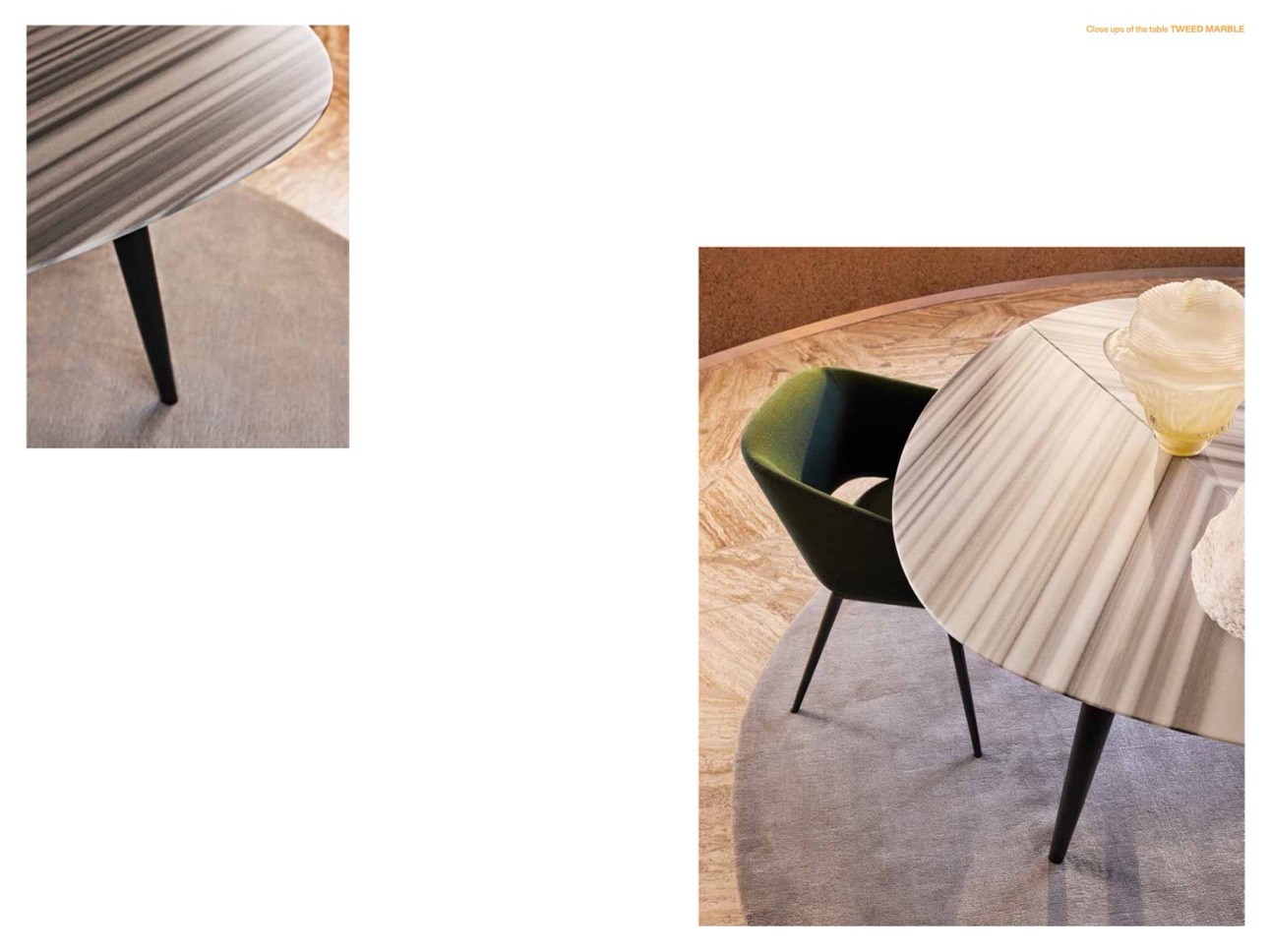 Close ups of the table TWEED MARBLE
