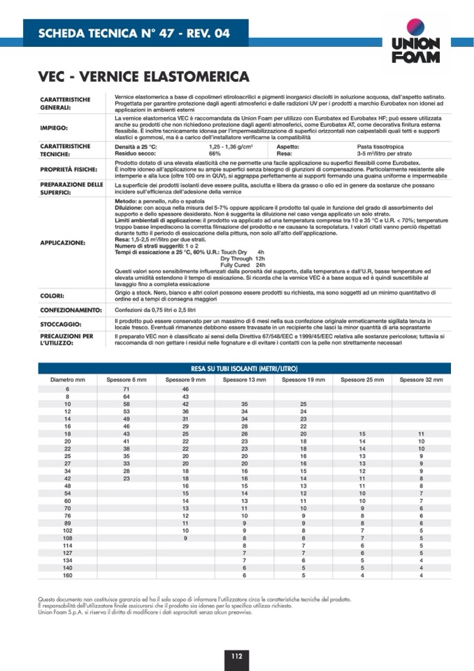 Union Foam S.p.A. si riserva il diritto di modificare i dati sopracitati senza alcun preavviso.