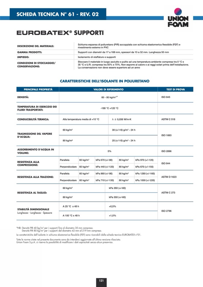 Union Foam S.p.A. si riserva la possibilità di modificare i dati sopracitati senza alcun preavviso.