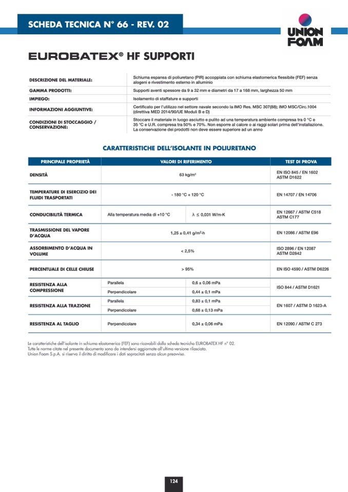 Union Foam S.p.A. si riserva il diritto di modificare i dati sopracitati senza alcun preavviso.