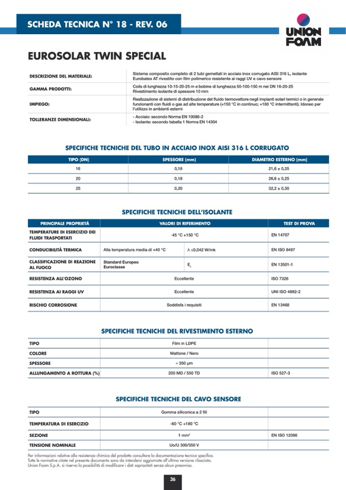 Union Foam S.p.A. si riserva la possibilità di modificare i dati sopracitati senza alcun preavviso.