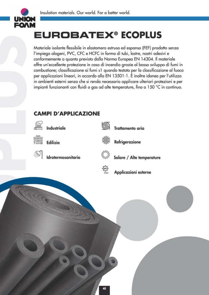 Materiale isolante flessibile in elastomero estruso ed espanso (FEF) prodotto senza