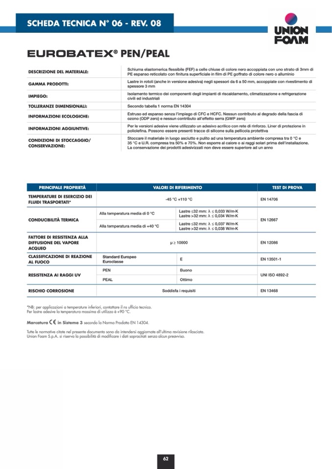 Union Foam S.p.A. si riserva la possibilità di modificare i dati sopracitati senza alcun preavviso.