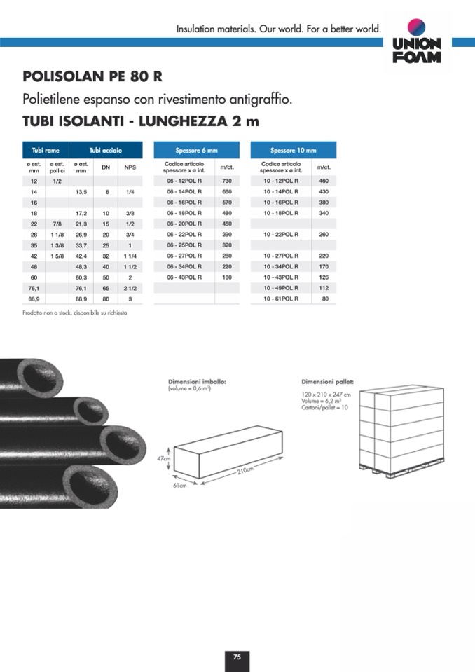 TUBI ISOLANTI - LUNGHEZZA 2 m