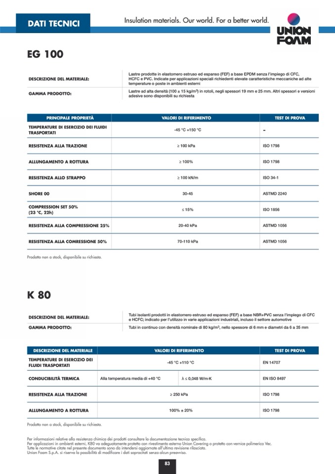 Union Foam S.p.A. si riserva la possibilità di modificare i dati sopracitati senza alcun preavviso.