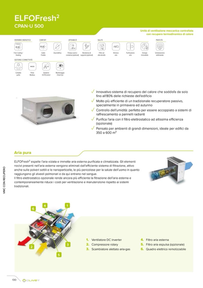 ELFOFresh2 espelle l’aria viziata e immette aria esterna purificata e climatizzata. Gli elementi