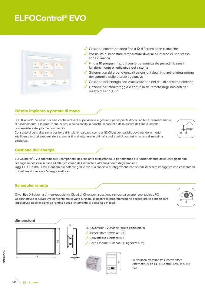 Consente di centralizzare la gestione di impianti realizzati con le unità Clivet compatibili, governando in modo