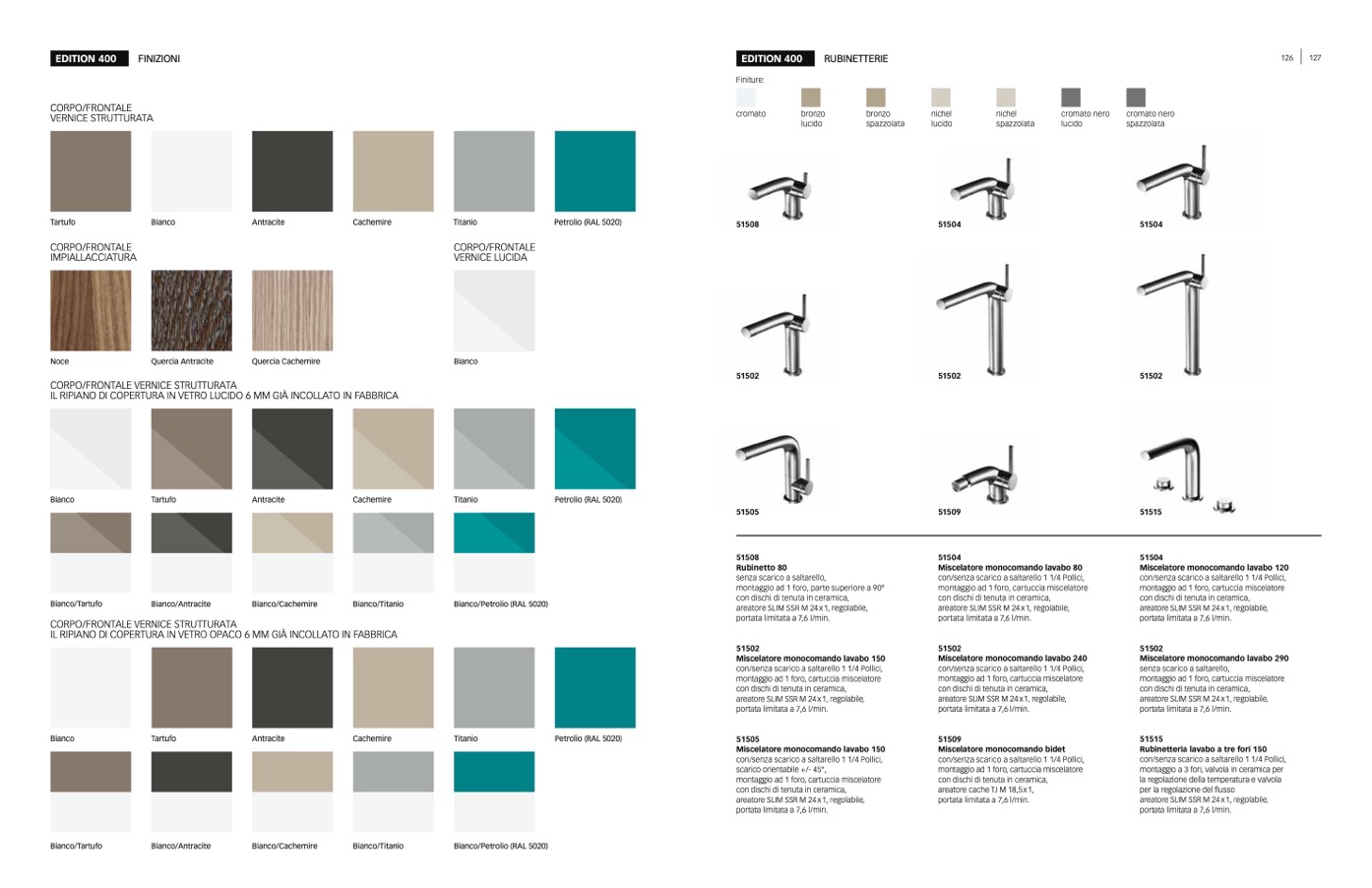 Rubinetteria lavabo a tre fori 150