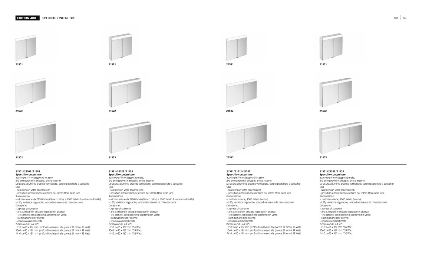 Struttura: alluminio argento vernicciato, parete posteriore a specchio