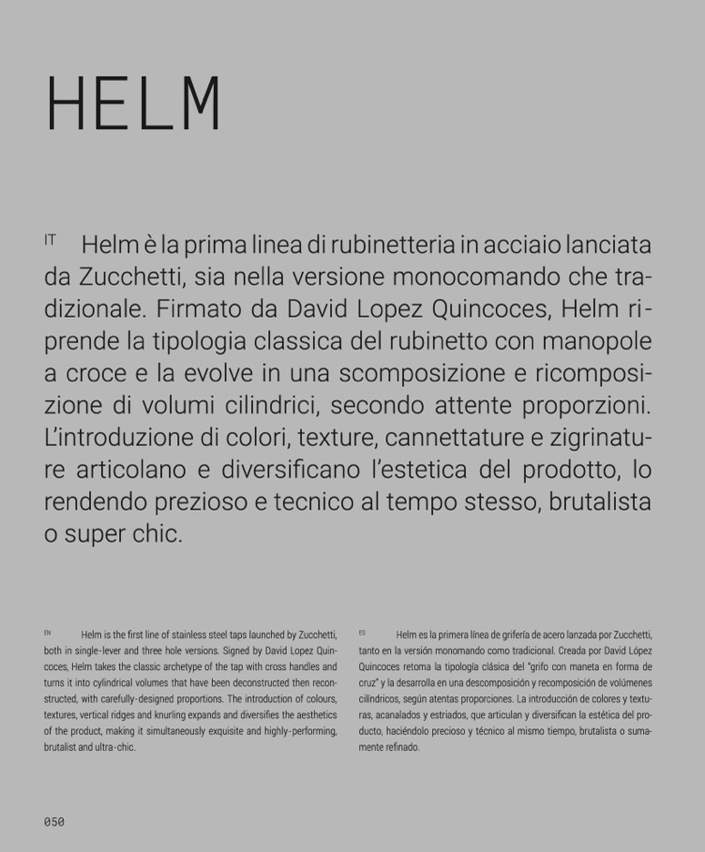 Helm is the first line of stainless steel taps launched by Zucchetti,