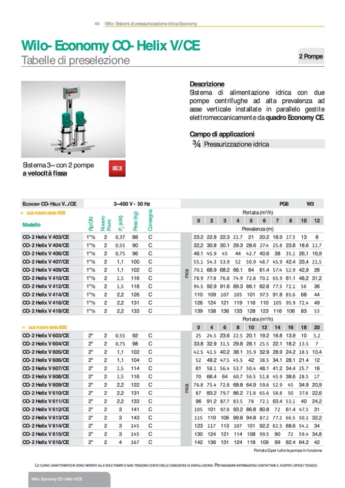 44 Wilo-Sistemi di pressurizzazione idrica Economy