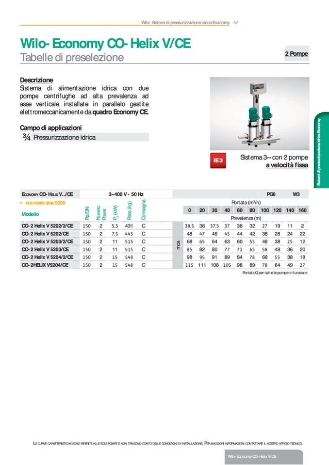 E CURVE CARATTERISTICHE SONO RIFERITE ALLE SOLE POMPE E NON TENGONO CONTO DELLE CONDIZIONI DI INSTALLAZIONE