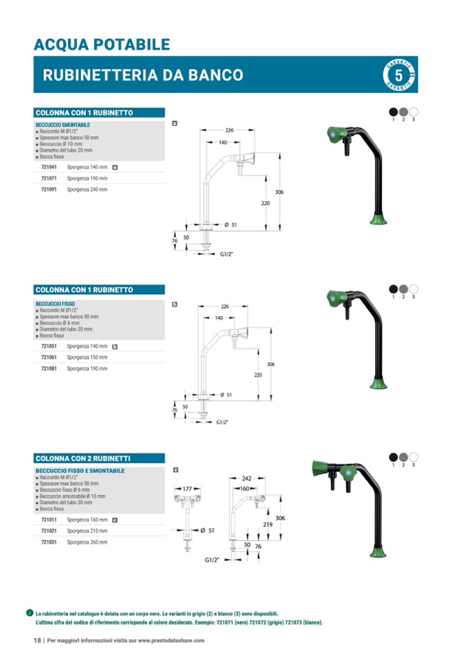 ʢ La rubinetteria nel cataloguo è dotata con un corpo nero. Le varianti in grigio (2) e bianco (3) sono disponibili.
