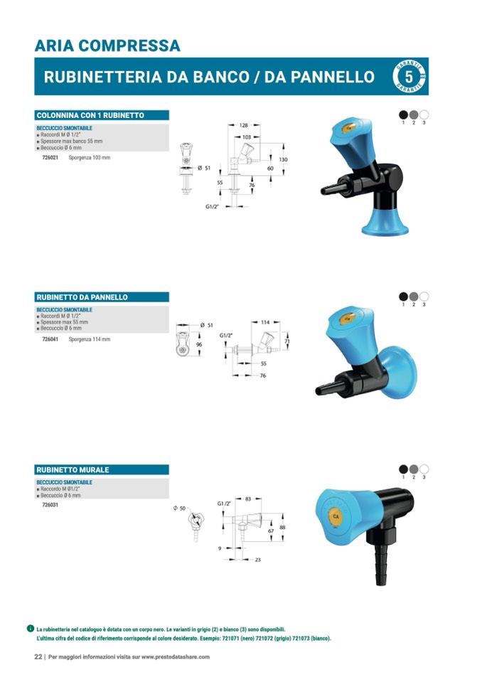 ʢ La rubinetteria nel cataloguo è dotata con un corpo nero. Le varianti in grigio (2) e bianco (3) sono disponibili.