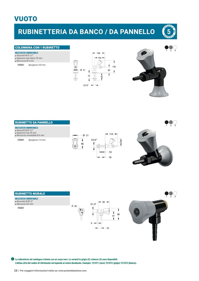 ʢ La rubinetteria nel cataloguo è dotata con un corpo nero. Le varianti in grigio (2) e bianco (3) sono disponibili.