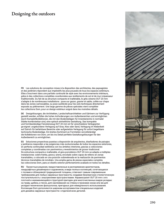 traditionnelle. Du fait de sa structure compacte et inaltérable, le grès cérame OUT 20 mm
