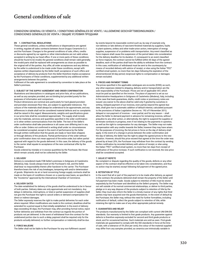 CONDIZIONI GENERALI DI VENDITA / CONDITIONS GÉNÉRALES DE VENTE / ALLGEMEINE GESCHÄFTSBEDINGUNGEN /