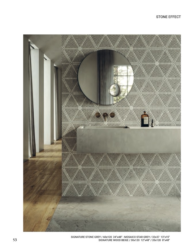 SIGNATURE STONE GREY / 60x120 24”x48” - MOSAICO STAR GREY / 32x37 13”x15”